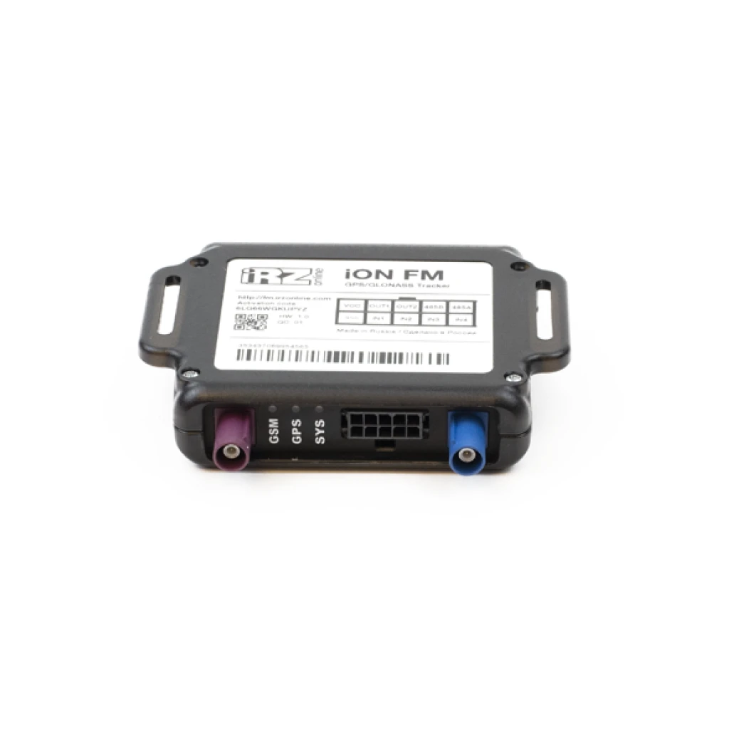 iON FM – недорогой GPS/ГЛОНАСС -трекер с возможностью подключения различных датчиков и другого внешнего оборудования. Устройство поддерживает интерфейс RS485, имеет 4 универсальных входа, каждый из которых может быть настроен как аналоговый, дискретный, частотный или счетный вход. Все входы, выходы и питание вынесены на 10-контактный разъем Microfit. Также имеется 2 выхода (открытый коллектор). К любым двум входам одновременно могут быть подключены внутренние подтяжки по питанию.