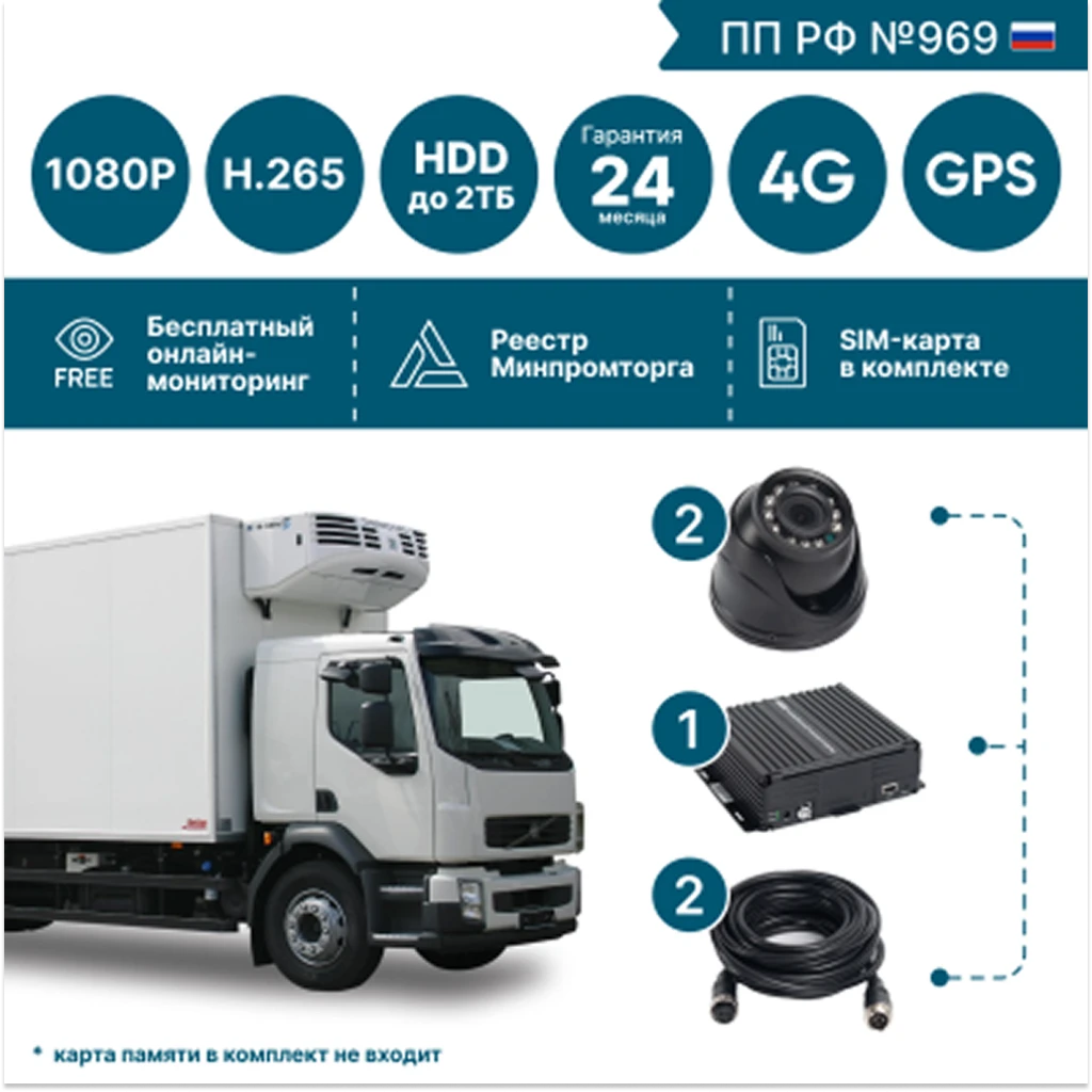 Комплект видеонаблюдения на 2 камеры NSCAR BN201 FullHD_HDD с опциями 4G+GPS/Глонасс