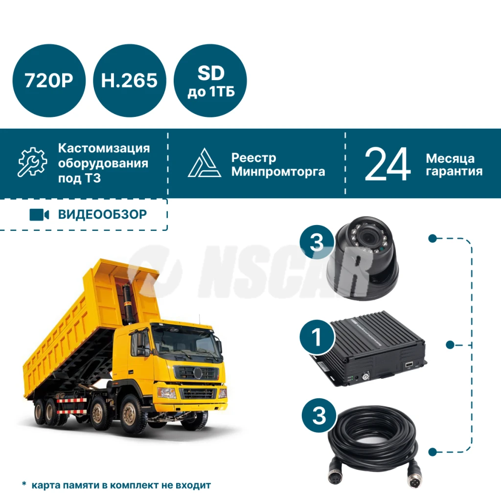 Комплект видеонаблюдения для самосвала NSCAR (3 видеокамеры) GT301_HDD (запись на HDD)