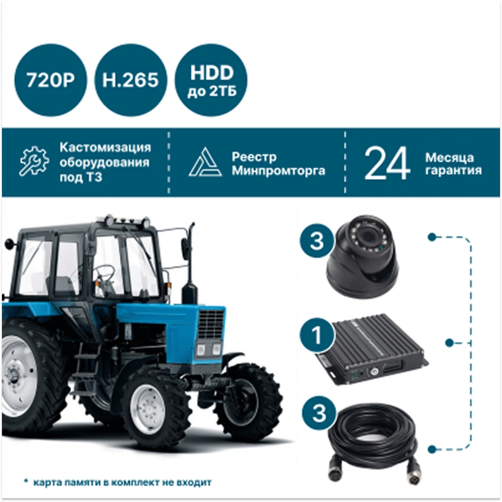Комплект видеонаблюдения для сельхозтехники на 3 камеры NSCAR AE301_HDD