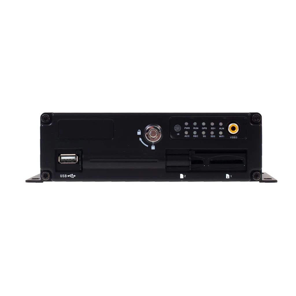 Восьмиканальный автомобильный видеорегистратор с возможностью записи аудио и видео с разрешением 704×576 (25 к/с на каждый канал) и архива на две SD карты емкостью до 128 ГБ каждая.